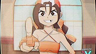 Anime Cosplay Lesben hämmern enge Ärsche mit riesigen Strapons