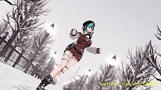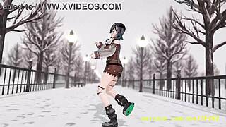 Grote tieten 3d konijn striptease met sexy dans en groeps kont actie in anime