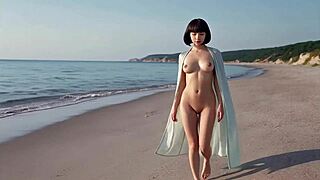 imagine mature femdom babe dominating on crowded public beach in 3d anime manga style