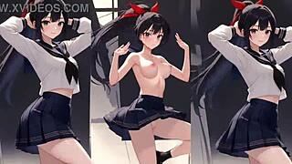 Нецензурированная японская красотка стройная девчонка Misaki-Chan ласкает гладкую зону в униформе косплей Часть 2