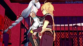 Hu Tao and Aether went at it with intense sex all night until morning in this Genshin Impact scene
